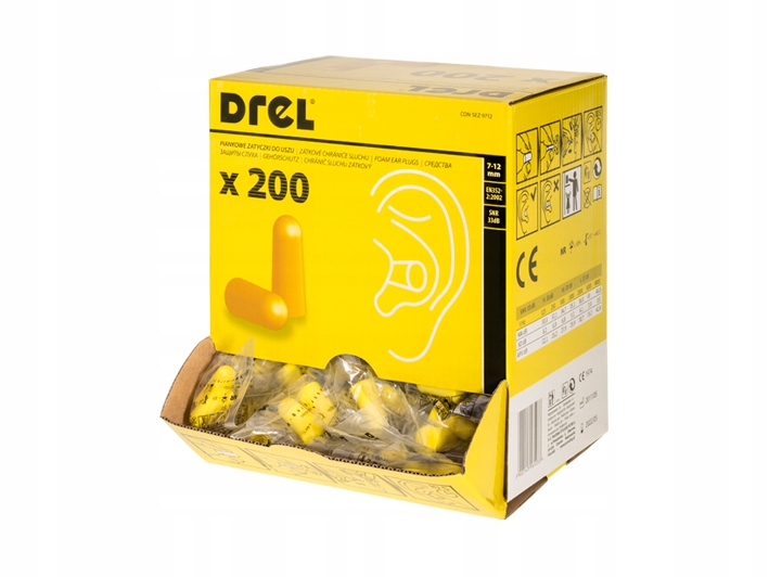 Jednorazowe wkładki przeciwhałasowe do uszu wykonane z pianki poliuretanowej.
