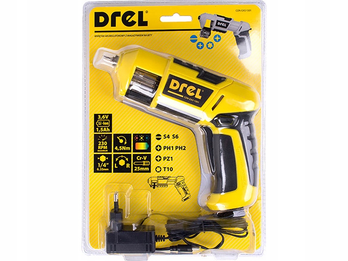 - Pakowanie: blister Innowacyjny, opatentowany system zmiany bitów Wkrętak akumulatorowy z magazynkiem na bity i doświetlająca diodą LED