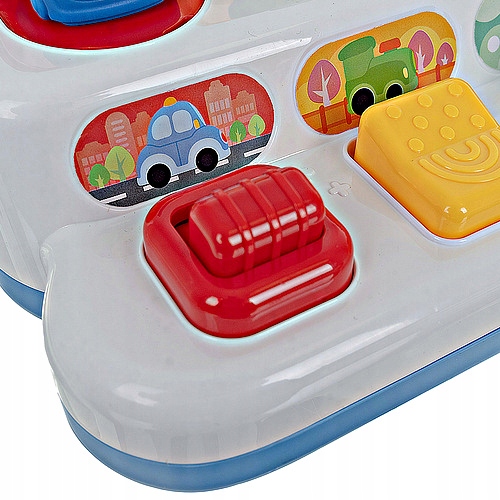 Różne kształty przycisków angażują zmysły i wspierają rozwój percepcji dotykowej, wzrokowej i ruchowej dziecka.