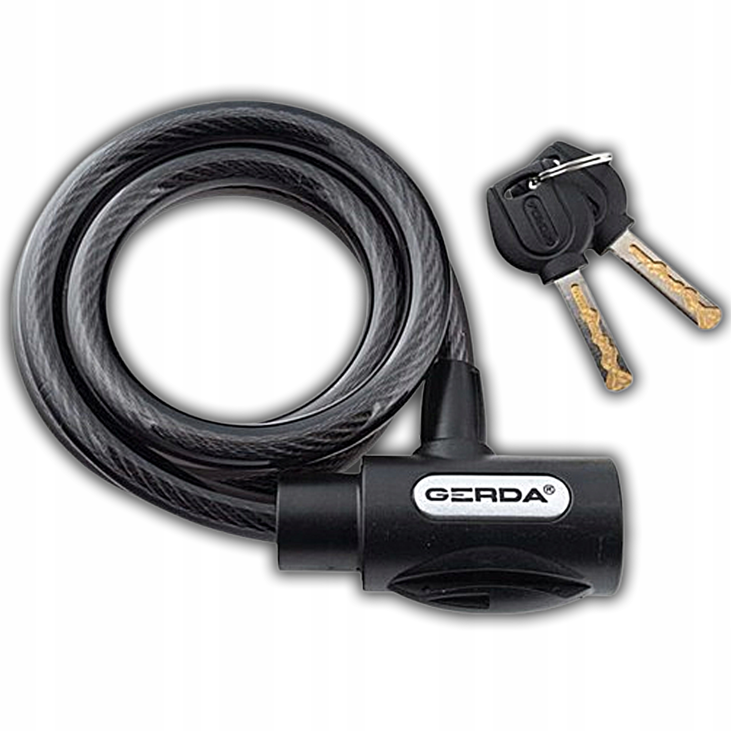 ✳️Zapięcie rowerowe GERDA FLEX 1200/8V | Linka 120 cm | Zamek z kluczem | Czarna