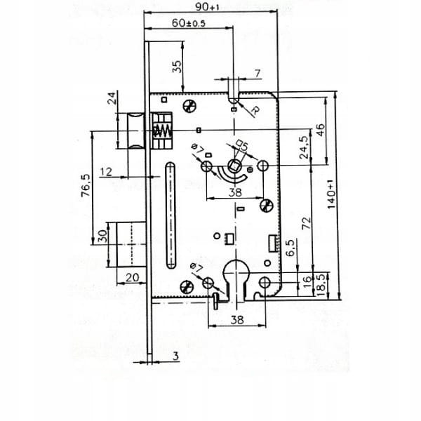 Zamek asymetryczny 72/60 z mechaniczną blokadą zapadki