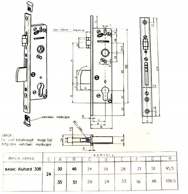 ZAMEK ALUHARD BASIC 30R CZOŁO 24 ROLKOWO ZASUWKOWY