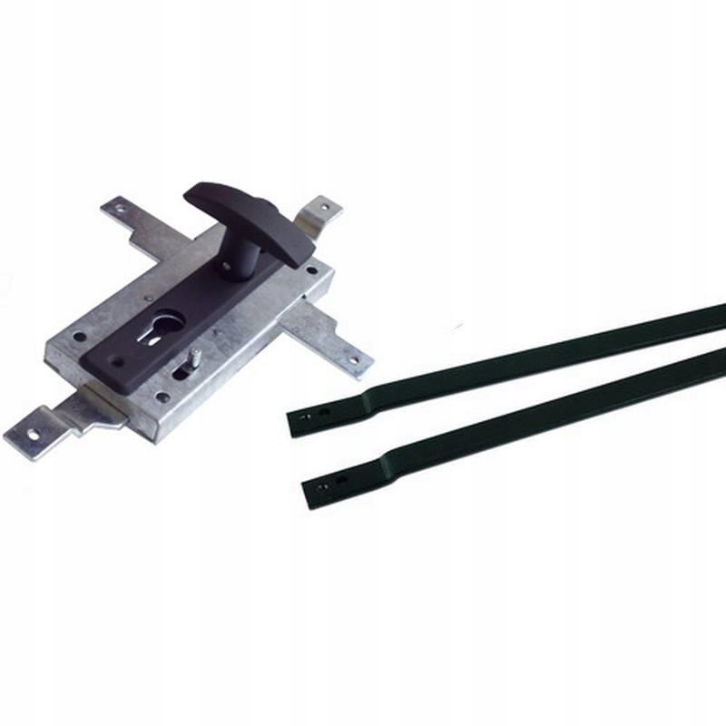 Zamek do bram, garaży, drzwi uchylnych i magazynowych. Ryglowany w poziomie i pionie, przeskok rygli 2 cm.