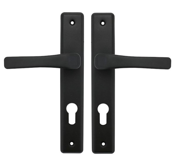 ❇️Klamka aluminiowa: z czarnym stalowym szyldem, trzpień 8mm, szerokość szyldów 36mm.