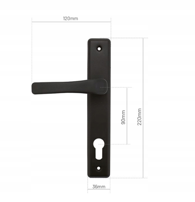 - Zamek: Wysokość 220mm, szerokość 38mm, głębokość 20mm