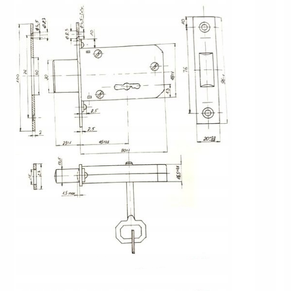 W zestawie: Zamek, zaczep płaski i kątowy , wkręty