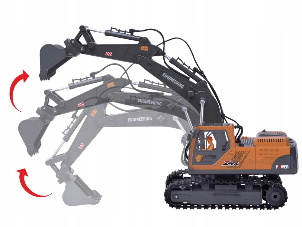 Ta wszechstronna koparka RC przeniesie dziecko prosto na plac budowy! Solidnie wykonana, z dbałością o każdy szczegół, zachwyca wyglądem przypominającym prawdziwą maszynę. Wyposażona w ruchome ramię, obracaną kabinę, oświetlenie LED oraz trzy wymienne akcesoria robocze – daje ogrom możliwości zabawy i nauki.