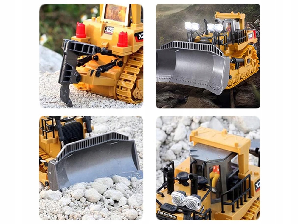 Sterowany spychacz RC to doskonała propozycja dla każdego miłośnika dużych maszyn i pojazdów budowlanych. Model został wykonany z dbałością o najmniejsze szczegóły, dzięki czemu prezentuje się niezwykle realistycznie i gwarantuje wiele godzin kreatywnej zabawy.