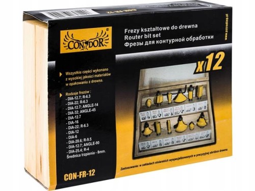 ZESTAW FREZÓW STOLARSKICH 12 CZĘŚCI
