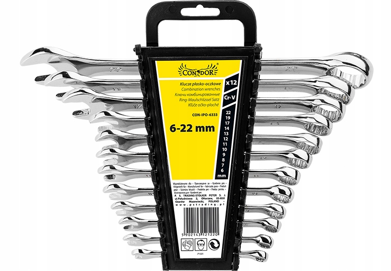 ZESTAW KLUCZY KLUCZE PŁASKO OCZKOWE 6-22 12szt