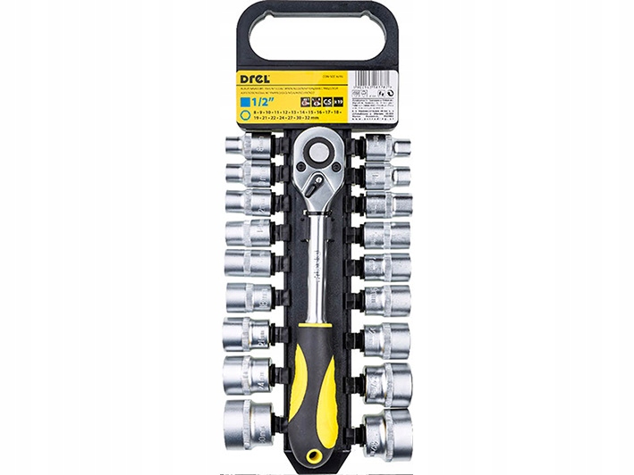 18 szt. kluczy nasadowych na 1/2" - 8, 9, 10, 11, 12, 13, 14, 15, 16, 17, 18, 19, 21, 22, 24, 27, 30, 32