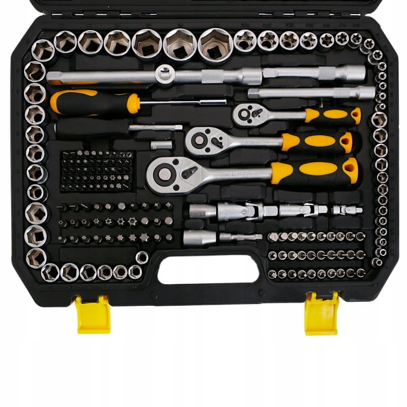 Narzędzia wykonane z utwardzanej stali CrV ( c h r o m o w o - w a n a d o w e ) . Dzięki chromowanej powłoce, narzędzia są odporne na korozję, utlenianie, nadmierne ścieranie oraz posiadają dużą wytrzymałość na wysokie temperatury. Walizka pomaga w transporcie narzędzi oraz utrzymaniu porządku na miejscu pracy. Każde narzędzie ma swoje wyznaczone miejsce.