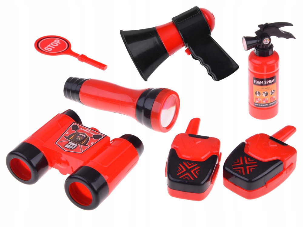 ZESTAW KOSTIUM STRAŻAKA KASK PIŁA 13 ELEMENTÓW STRAŻ POŻARNA DLA DZIECI