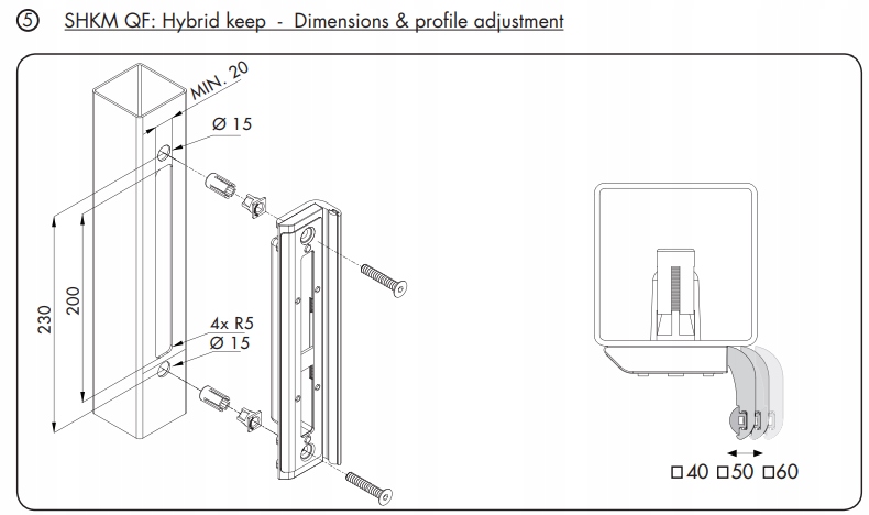 - Regulacja rygla dziennego do 20 mm – szybkie i wygodne dopasowanie zamka do konstrukcji.