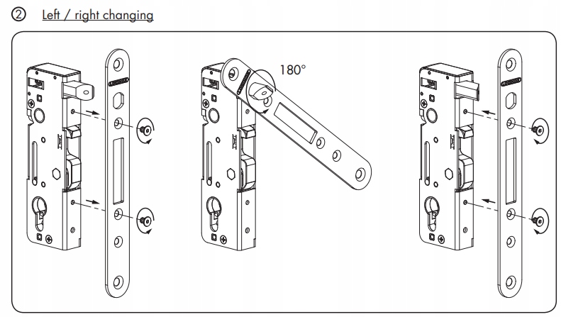 - Uniwersalny montaż – możliwość łatwej zmiany strony na lewą lub prawą bez demontażu zamka.
