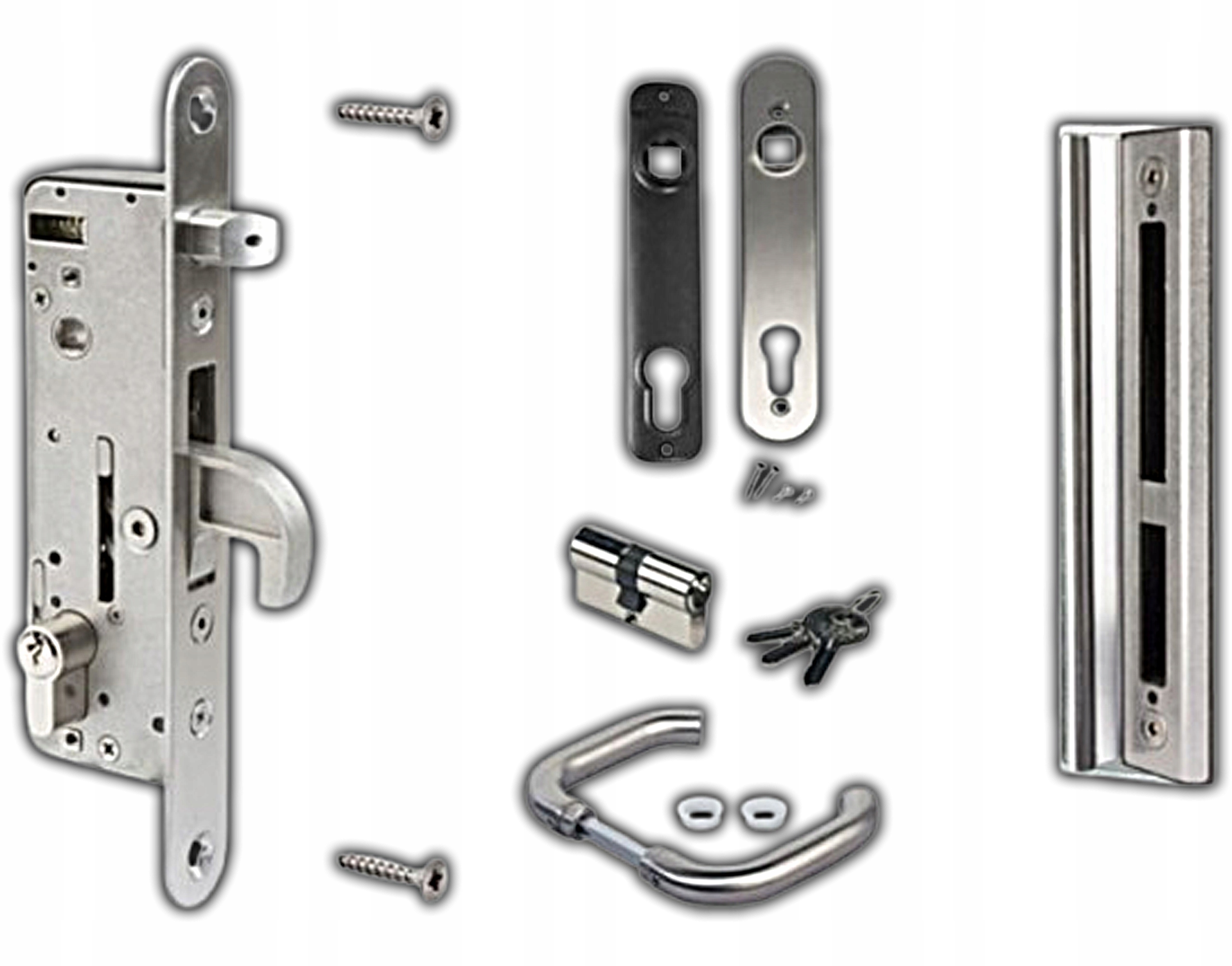 ✳️Zestaw Locinox do bram i furtek: zamek wpuszczany H-Metal 92/35 INOX + zaczep + klamka INOX + wkładka bębenkowa 27/27
