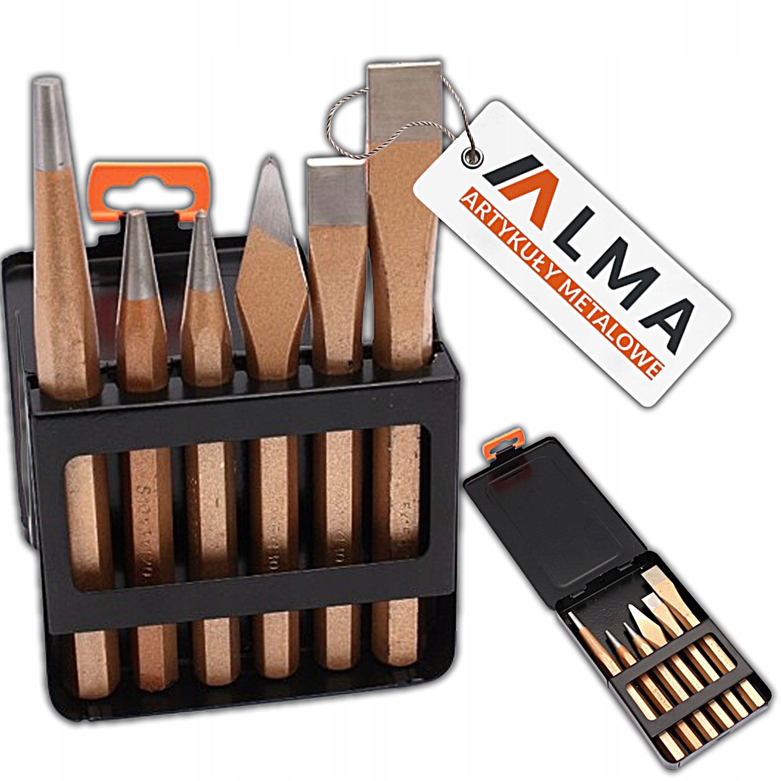 ZESTAW PRZECINAKÓW I PUNKTAKÓW DOBIJAKI ŚLUSARSKIE KOMPLET 6 SZTUK + KASETA