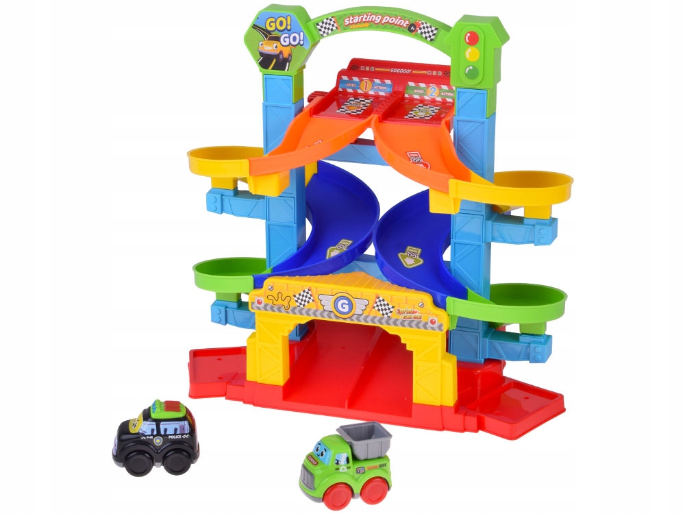 Spiralny tor wyścigowy to fantastyczna zabawka, która gwarantuje maluchom mnóstwo radości i jednocześnie wspiera ich rozwój. Kolorowe elementy oraz dynamiczna, zakręcona konstrukcja sprawiają, że dzieci z zaciekawieniem obserwują, jak autka zjeżdżają po torze, nabierając prędkości i ścigając się w dół.