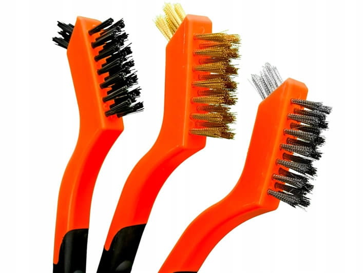 - Mosiężna szczotka, doskonała do usuwania rdzy i zanieczyszczeń na metalowych powierzchniach.